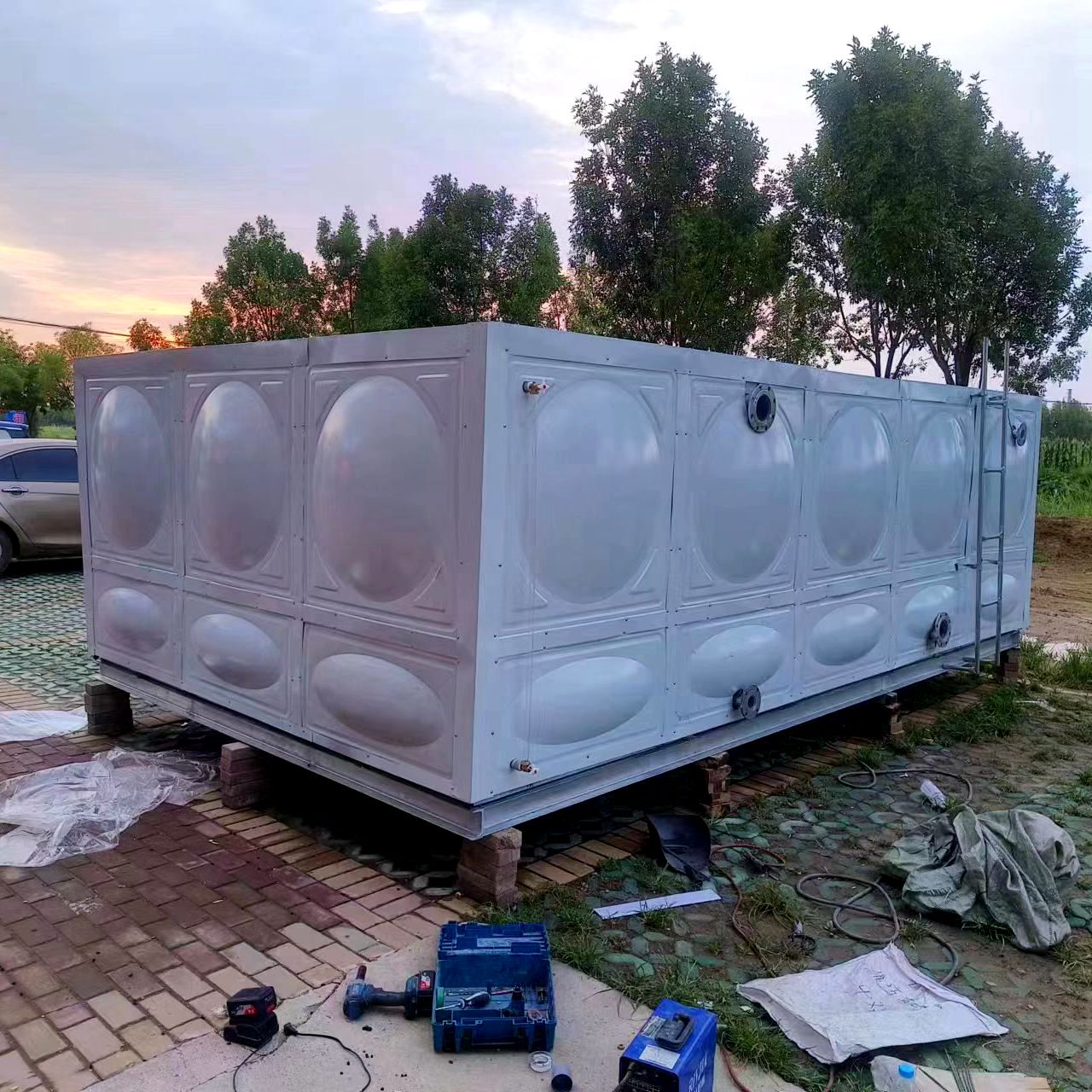 我司承接的山東省濱州市惠民縣御龍灣小區(qū)樓頂22.5立方鍍鋅鋼板保溫水箱安裝完成。此水箱為消防水箱,因安裝位置在樓頂,考慮安裝師傅的安全問題,因此采用整體組裝好后,吊裝到樓頂。僅用一天的時(shí)間安裝試水完成。鍍鋅鋼板水箱具有重量輕、造價(jià)低、安裝簡(jiǎn)單、用途廣等優(yōu)點(diǎn)。鍍鋅鋼板水箱有空氣過濾及檢查清洗人孔、加鎖裝置,鍍鋅鋼板水箱耐腐蝕,反射在陽光吸收熱量,內(nèi)部不易滋生藻類。