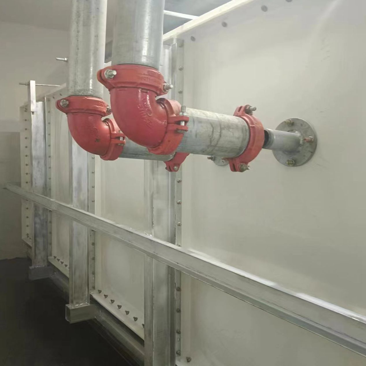 我司承接的山東省菏澤市單縣公安局執法辦案中心無內件外加固玻璃鋼水箱已經安裝試水完成。由于水質特殊性采用的是水箱內部無支撐拉筋等輔助配件,在水箱外側用工字鋼加固。可以大大延長水箱的使用壽命。