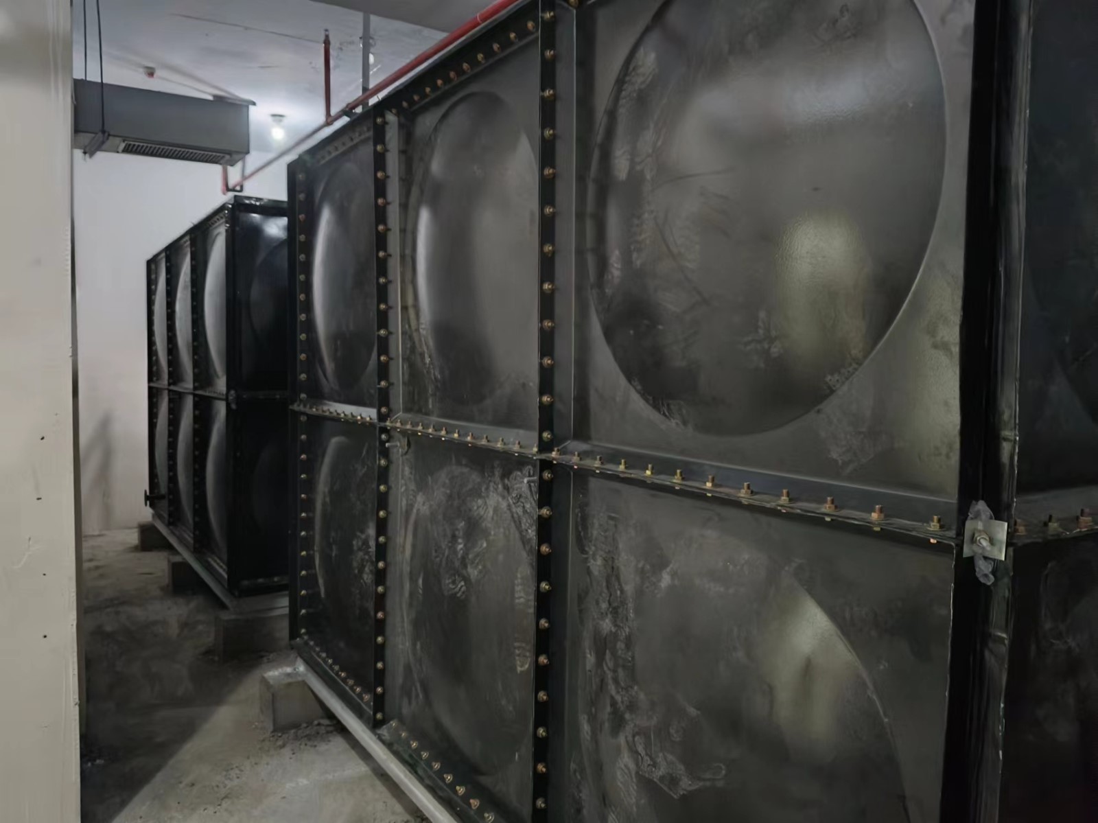 我司承接的江蘇常州市長寧區(qū)萬象城搪瓷鋼板油箱項(xiàng)目已安裝完成。裝配式式搪瓷鋼板儲(chǔ)油箱采用Q235鋼板,沖壓形成1000×1000和1000×500的標(biāo)準(zhǔn)塊,周邊鉆孔,經(jīng)高溫?zé)Y(jié)搪瓷處理,現(xiàn)場進(jìn)行組裝,組裝時(shí)標(biāo)準(zhǔn)塊之間采用耐油膠墊密封,螺栓連接。