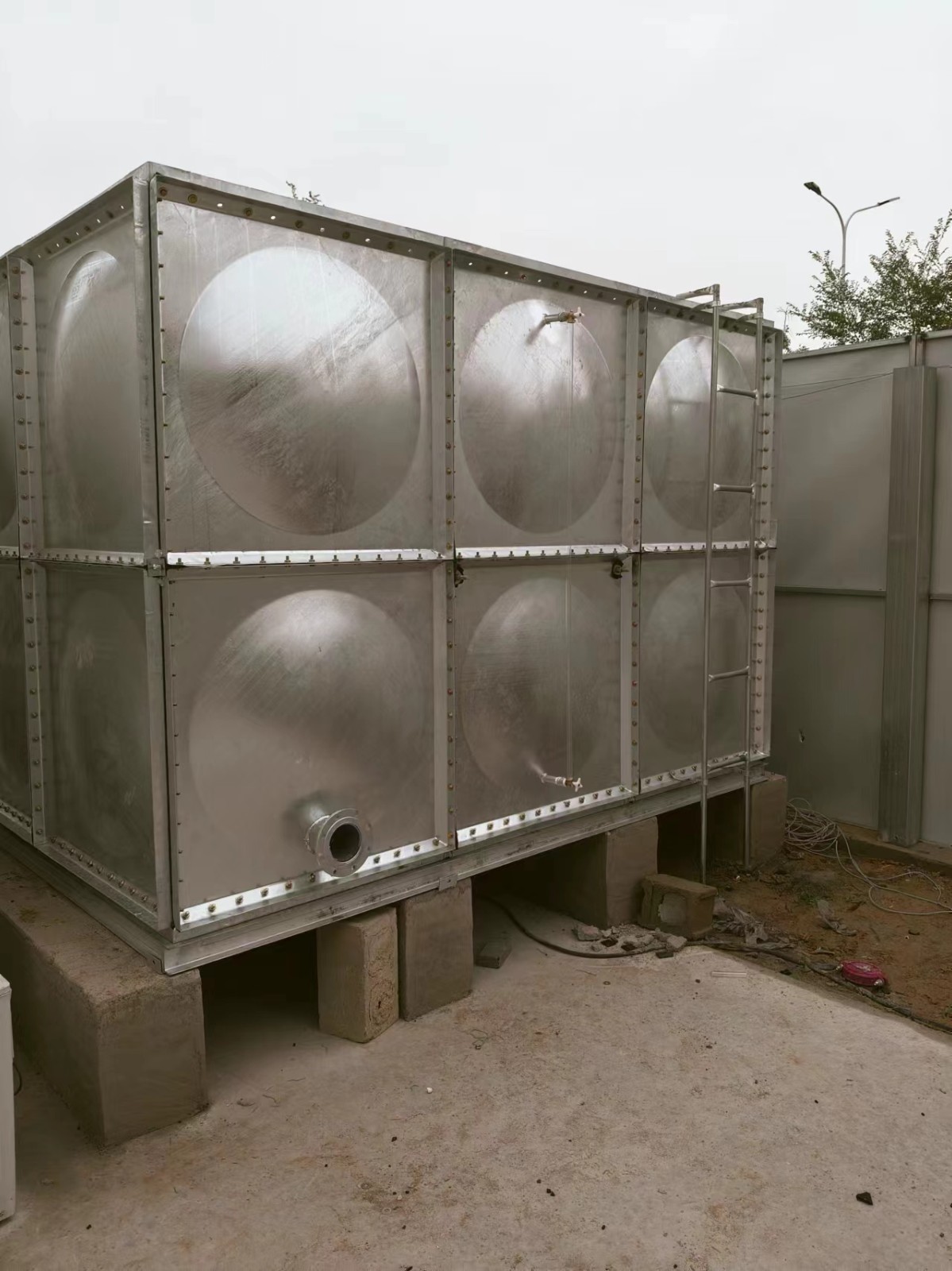 我司承接的北京昌平區(qū)觀堂府樓頂消防水箱項目,已經(jīng)安裝試水完工。此水箱為熱浸鍍鋅鋼板,其具有很強(qiáng)的耐腐蝕性。熱鍍鋅是將鋅金屬通過熱融化浸泡在鋼板表面形成的一層鋅層,從而起到防止鋼材腐蝕的作用。這種處理方式使得熱鍍鋅鋼板水箱能夠在惡劣的環(huán)境中長期使用,不易生銹,大大延長了水箱的使用壽命。