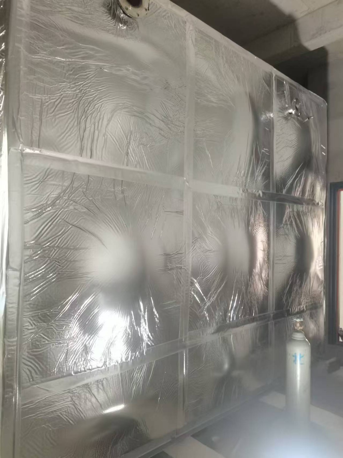 我司承接的山東省濱州市濱城區(qū)西海家苑不銹鋼保溫水箱項目現(xiàn)已完工。水箱為不銹鋼304材質(zhì),外表做了橡塑鋁箔布保溫層,鋁箔橡塑保溫材料為閉泡式結(jié)構(gòu),且表面平整光滑,所以外界空氣中的水汽很難滲透到材料之中,保冷保溫不必再添加隔汽層,從而獲得較佳的導熱系數(shù),它的陰濕因子大于4.5×103,使它的整體既是保溫層又是防潮層。因此適用于多種防火要求較高的場所使用。