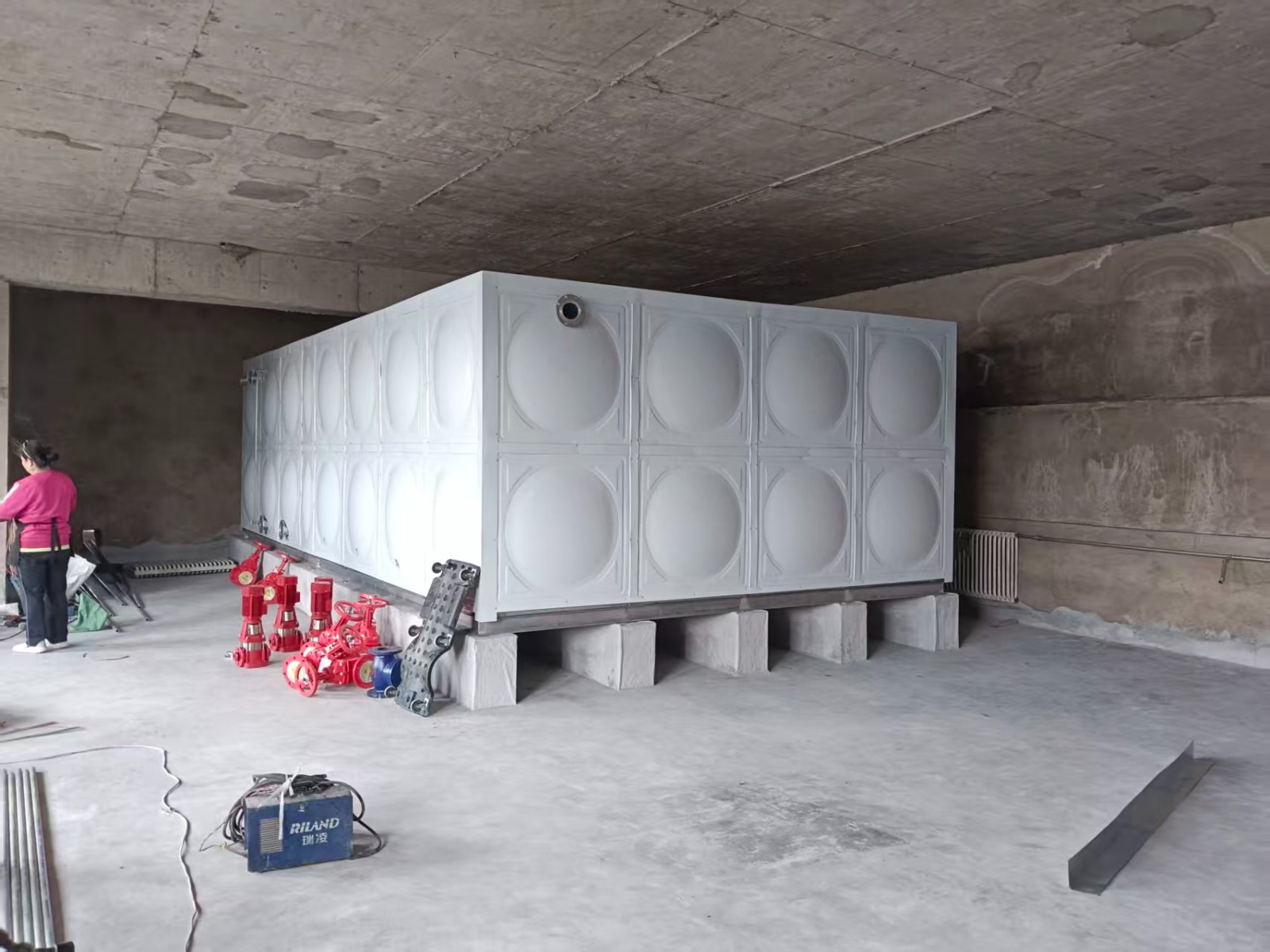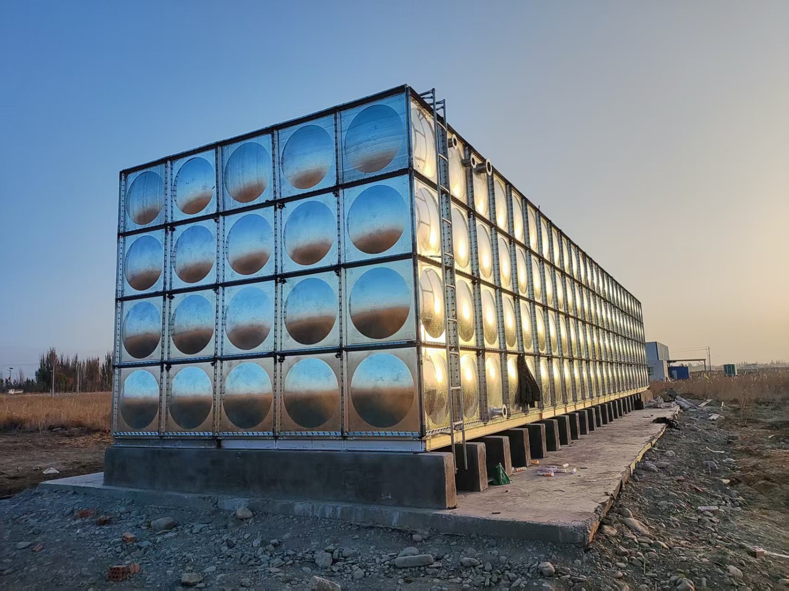 安裝地點:新疆巴州輪臺縣箱泵一體水箱項目產品名稱:鍍鋅鋼板消防水箱產品規格:25(20+5)x5x4=500立方供貨單位:山東省騰翔集團武城模壓制品有限公司我司承接的新疆巴州輪臺縣箱泵一體水...